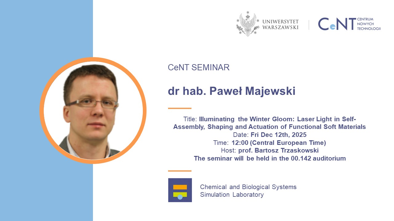 The Centre of New Technologies, University of Warsaw invites to a seminar by: prof. Paweł Majewski Faculty of Chemistry, University of Warsaw Title: Illuminating the Winter Gloom: Laser Light in ...